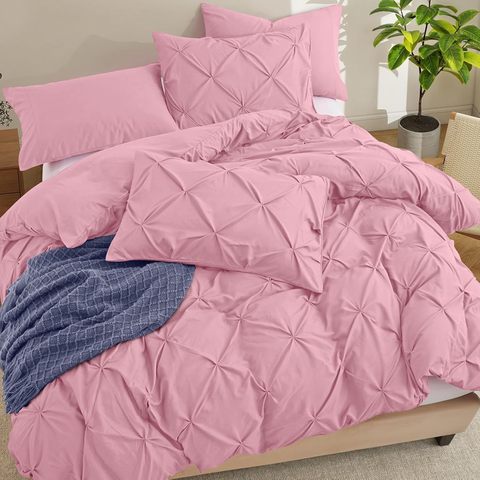 शानदार गर्म नरम माइक्रोफाइबर गुलाबी पिनटक 5 टुकड़ा डुवेट कवर गुणवत्ता जिपर और 8 संबंध गर्म बिक्री